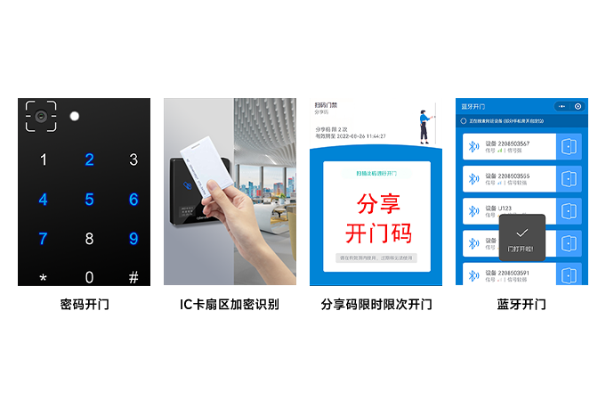 支技動態(tài)臨時密碼、預約限時限次的開門碼、刷卡、藍牙等多種方式開門