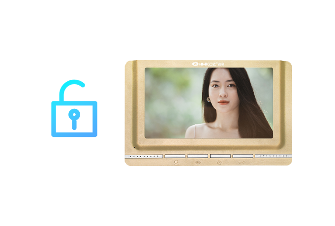 接聽門口機的呼叫,確認后可一鍵開鎖